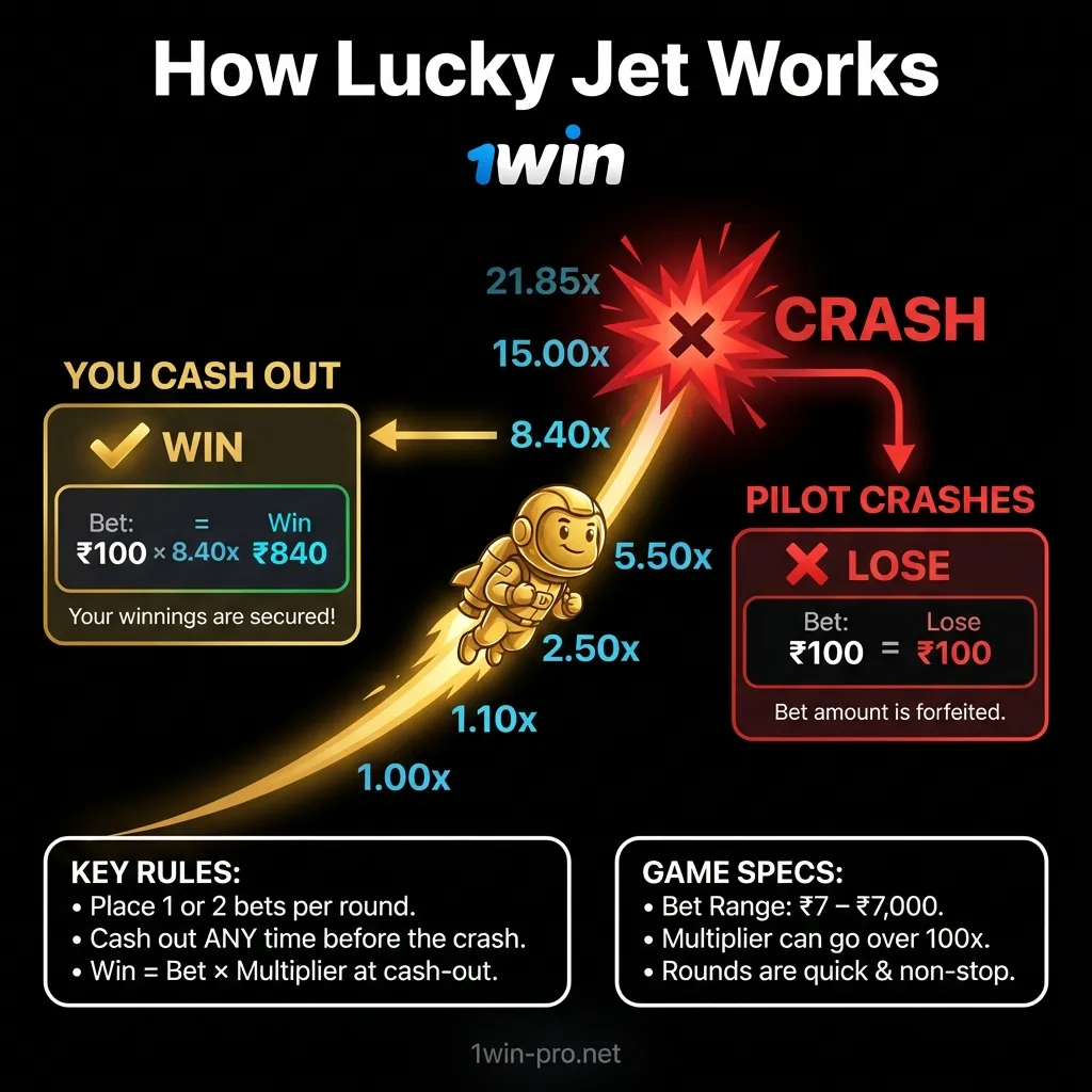 Lucky Jet is a high-energy crash game where players watch a jetpack-wearing pilot soar higher, multiplying their stake in real time. Indian players love it for its simple rules, 97% RTP, and instant results. Enjoy this and many other exciting games on our dedicated crash casino platform for mobile — 1win. On 1win, you get a 500% bonus up to ₹75,000, safe payment options like UPI and PayTM, and verified licensing. Fast withdrawals, live stats, and mobile access make it the smartest choice for crash game fans in India.